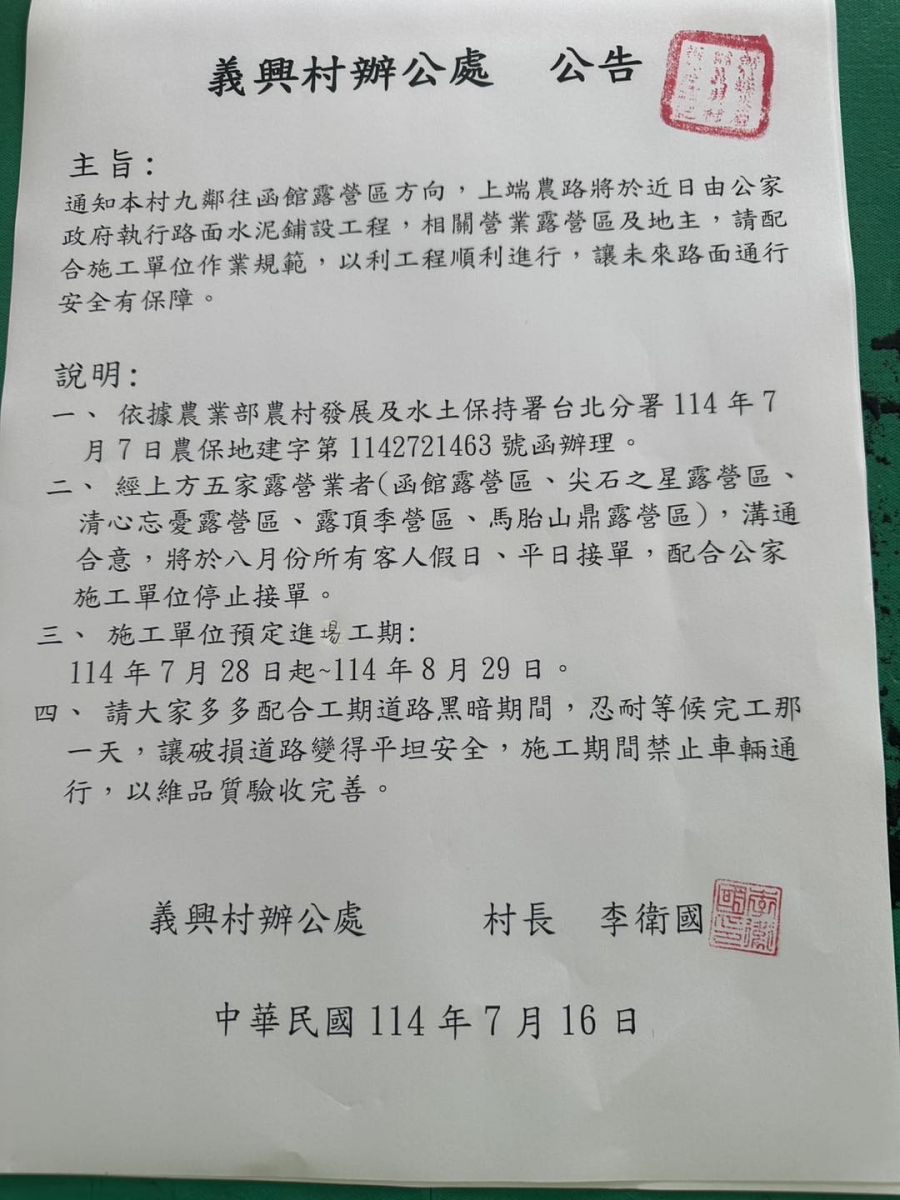 函館露營區將於114.7/28-114.8/29休園,